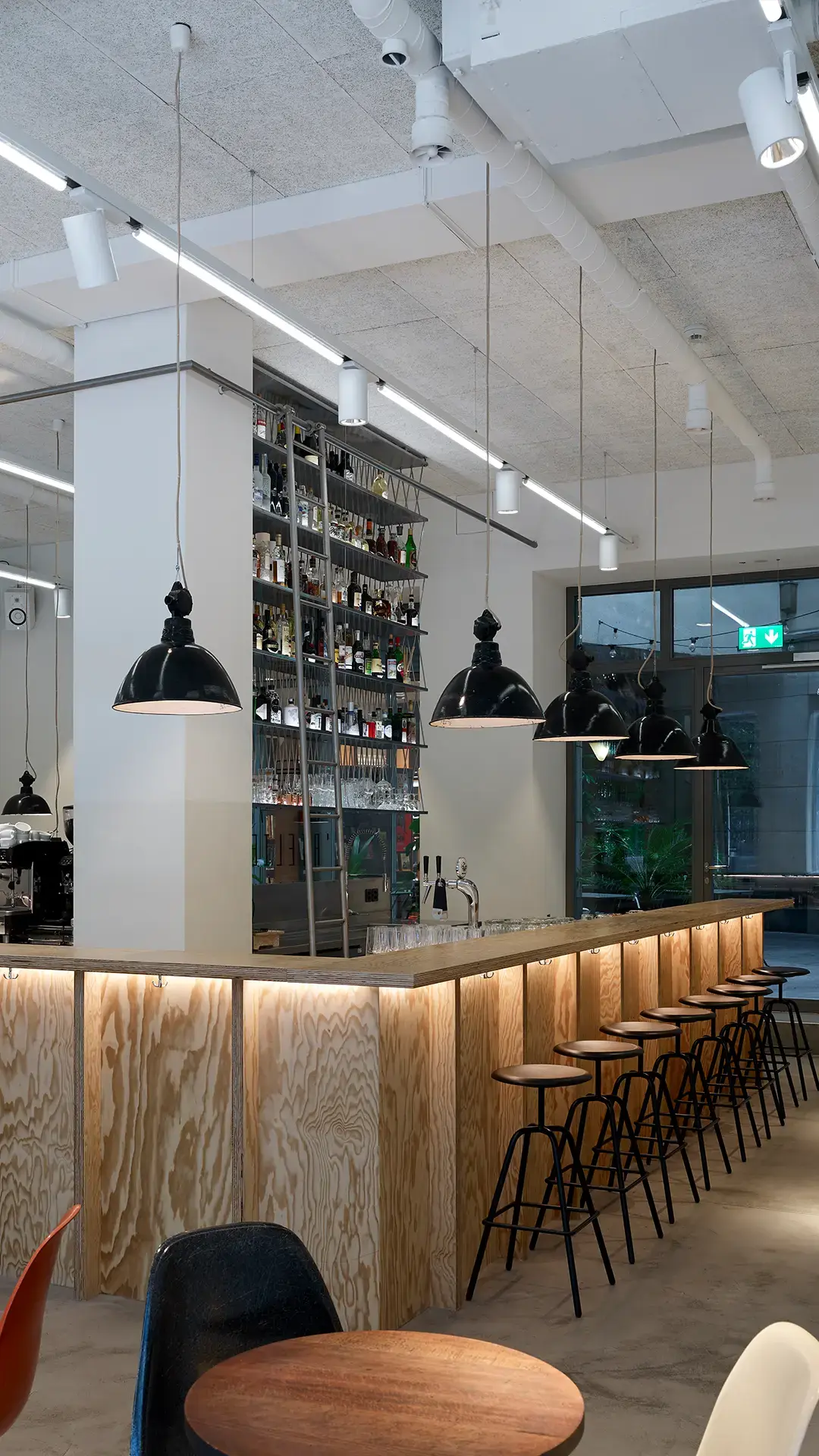 We helped a young gastronomy entrepreneur convert a former fashion boutique into a café/cocktail bar and event space in Basel's city centre. With its casual, cosmopolitan atmosphere reminiscent of a spacious artist's atelier, it quickly became the place to be and is regularly featured in international publications and exhibitions.